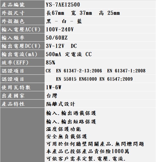 YS-7AE12500 CE認證
